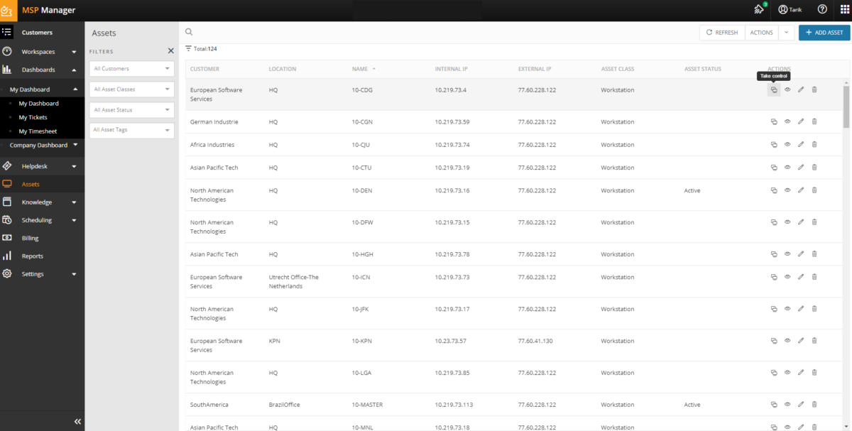 Sie können N‑able™ MSP Manager in N‑able RMM und N‑able N‑central integrieren, damit Ihre Assets stets synchron sind. So gibt es keine Bestandsabweichungen, dafür aber Remote-Sitzungen per Klick, aus Assetlisten oder Take-Control-Tickets.