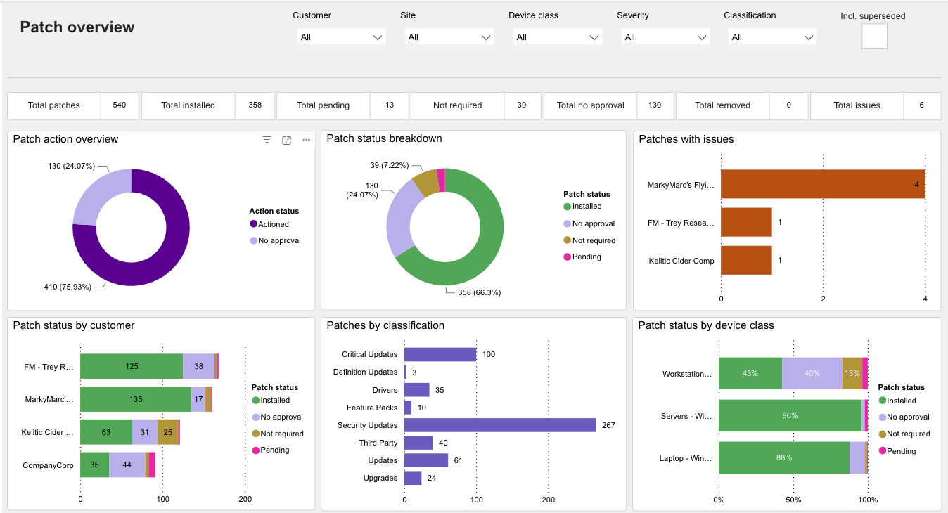 Utilizza le dashboard di gestione delle patch e i relativi report per saperne di più su stato del dispositivo, installazione, approvazioni ed esportazione.